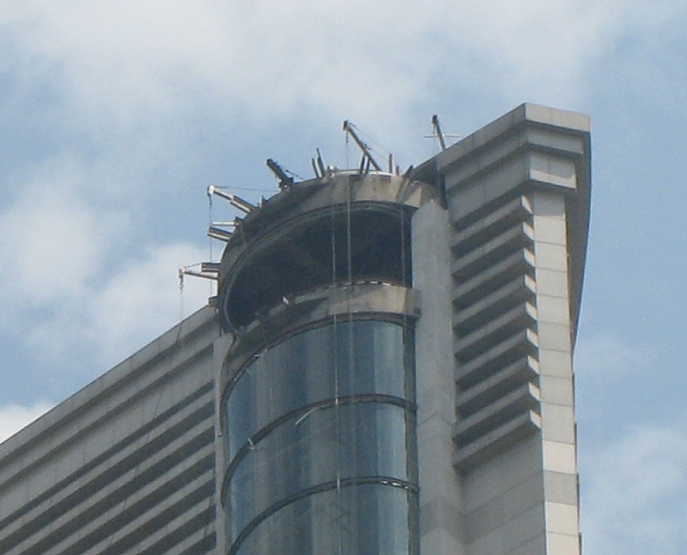 1997年,成都向陽(yáng)大廈后增設(shè)電梯井,成...