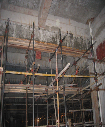 2005年4月,北京西單成都金沙第五層屋面新增大型室內(nèi)游泳池(30米×20米×1米),載荷由500kg/m2增加至1800 kg/m2。是目前國內(nèi)最大的室內(nèi)樓層上后增游泳池。5.12汶川大地震經(jīng)受嚴(yán)酷的考驗(yàn),雖然三分之一以上的水溢出,但整體及局部未受任何破壞,正常營業(yè)。